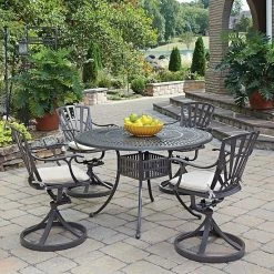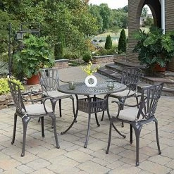 Best Pirce ???? Homestyles Patio Cast Aluminum Dining Table & Chair 5-piece Set Khaki Gray ????