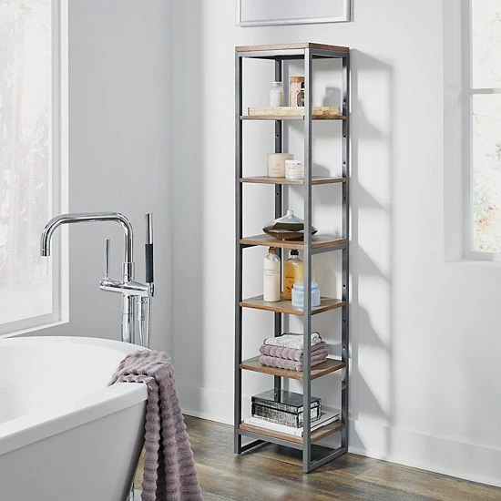 Bring sophistication to your space with this homestyles Barnside 6-Shelf Floor Decor.