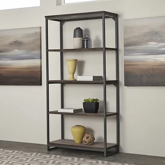 Bring sophistication to your space with this homestyles Barnside Metro Five 4-Shelf Bookcase.