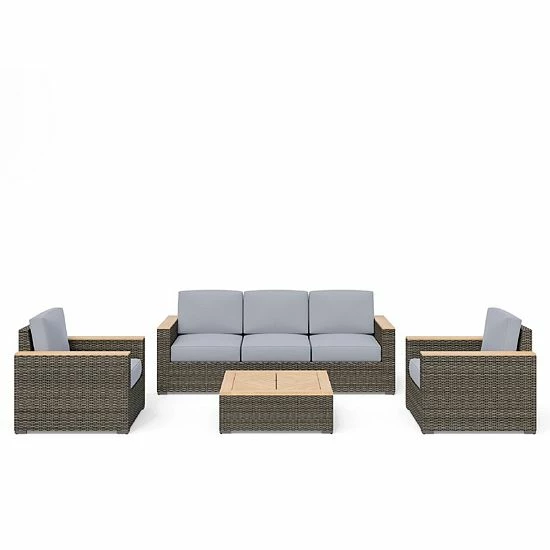 Spruce up your patio or backyard space with this homestyles Boca Raton Outdoor Couch, Chairs & Coffee Table 4-Piece Set.