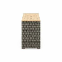 - Three removable Acacia tops reveal 4″D plastic bins