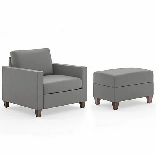 - Armchair: 34.5″H x 34″W x 32.25″D; Ottoman: 18.5″H x 26″W x 18″D