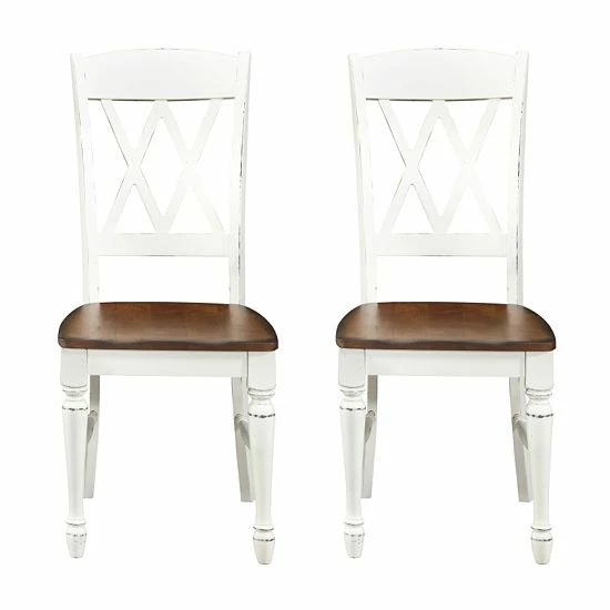 Crisscross backs, carved legs and a distressed finish gives this Monarch chair set timeless style.
