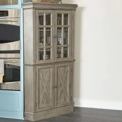 Bring sophistication to your space with this homestyles Mountain Lodge Corner Floor Cabinet.