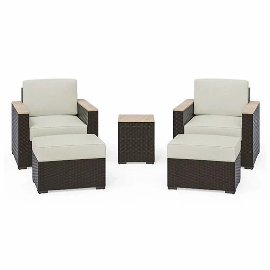 Complete your backyard oasis with this stylish and functional homestyles Palm Springs Arm Chair, Ottoman & Table 5-Piece Set.