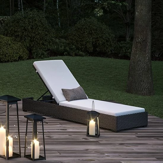 Featuring a weather-resistant rattan design, this homestyles Palm Springs outdoor chaise lounge offers traditional style and comfort.