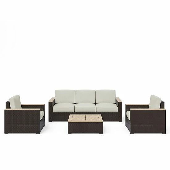 Transform your patio or backyard into a stylish oasis with this homestyles Palm Springs Outdoor Couch, Chairs & Coffee Table 4-Piece Set.