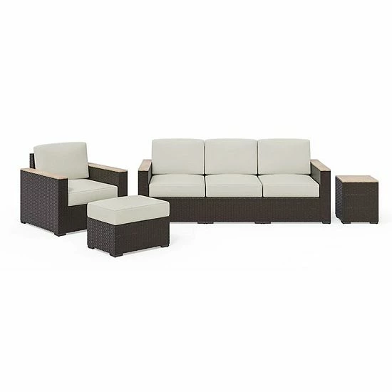 Keep your patio space looking fashionable with this homestyles Palm Springs Patio Couch, Chair, Ottoman & Side Table 4-Piece Set.