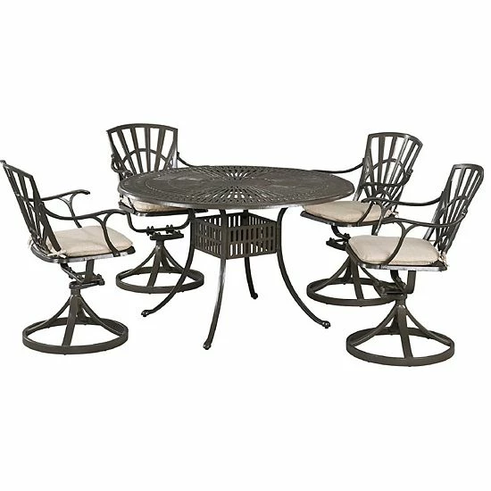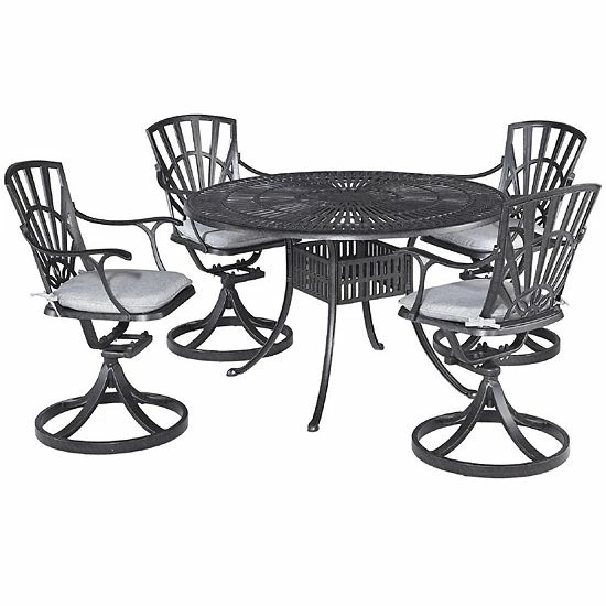 Finish your patio decor with this homestyles Patio Dining Table and Swivel Chair 5-piece Set.