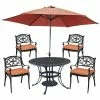 Finish your patio decor with this homestyles Patio Round Dining Table, Chairs & Umbrella 6-piece Set.