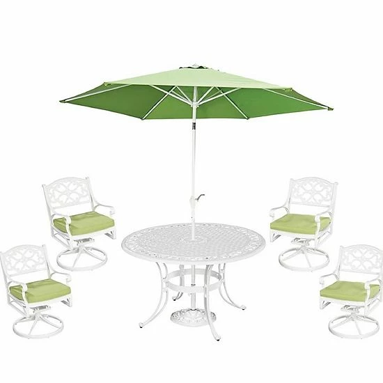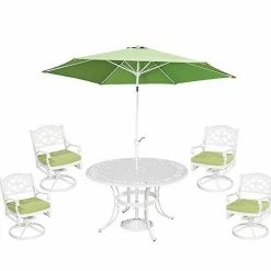 Finish your patio decor with this homestyles Patio Swivel Arm Chair, Dining Table, & Umbrella 6-piece Set.