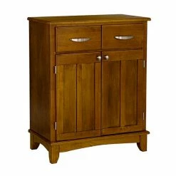This elegant buffet offers the stunning appeal of an oak-finished surface.